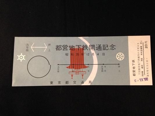 東京交通局 『浅草橋⇔押上 都営地下鉄開通記念 乗車券』 昭和35年12月5日 押上駅発行の印あり 状態:良